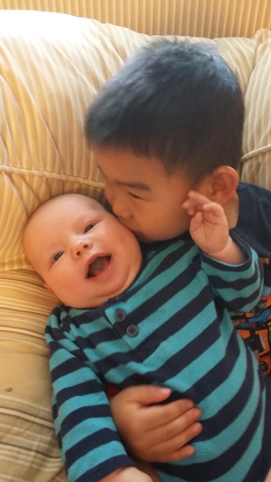 Josiah is wearing Isaac's 'gege' shirt. 'Gege' means 'big brother' in Chinese. :) What a blessing that this little boy gets to be a little brother and a big brother!